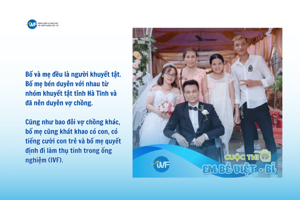 Hai vợ chồng đều hạn chế vấn động, phải ngồi xe lăn Khả năng sinh sản bị ảnh hưởng do hạn chế vận động, sau khi IVF tại Việt - Bỉ đã đón quý tử đầu lòng